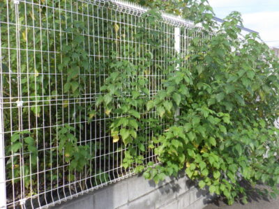 こちらはフェンスの周囲にツタが絡まっていましたので、はさみを使って丁寧にカットし、切り口にはハケで除草剤を塗りました。