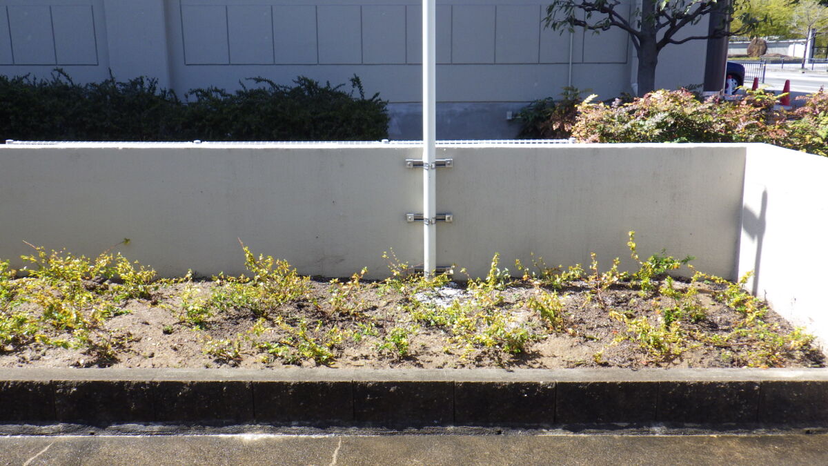 枯れてしまっていた花壇の植木の「植え替え」作業を2人半日で完了