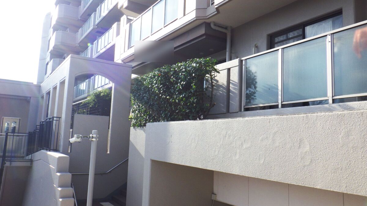 また、エントランス下は駐車場の出入口となっていたため、車の出入りにも配慮し、切った枝葉が車に当たらないように慎重に作業しました。