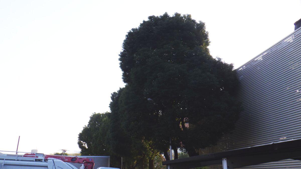 落ち葉にお悩みだった高さ8~10mのクス9本について、強剪定を行いました。