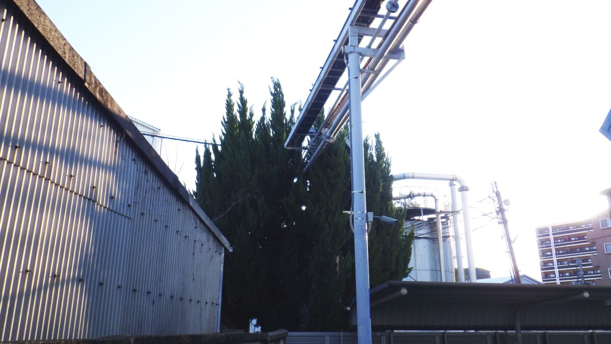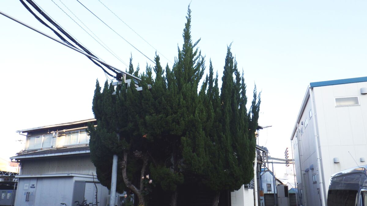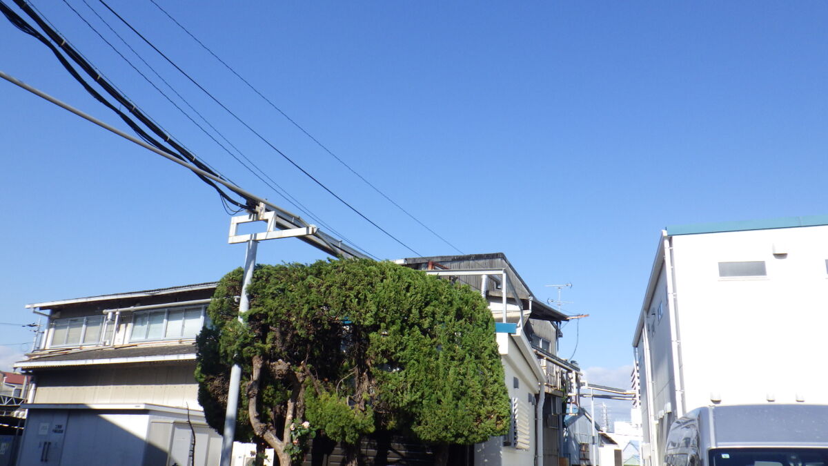 工場の敷地内に植えられている高さ約7mのカイヅカイブキについて、「高圧電線に木がかかってしまい危険なため、剪定してほしい」とのご要望でした。
