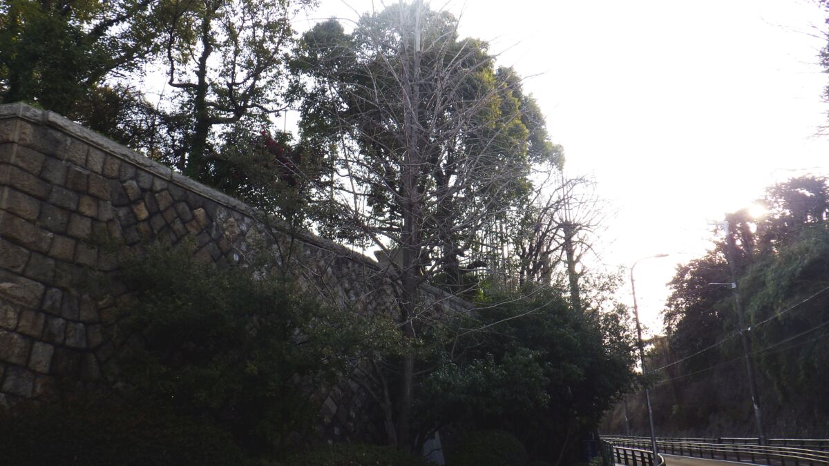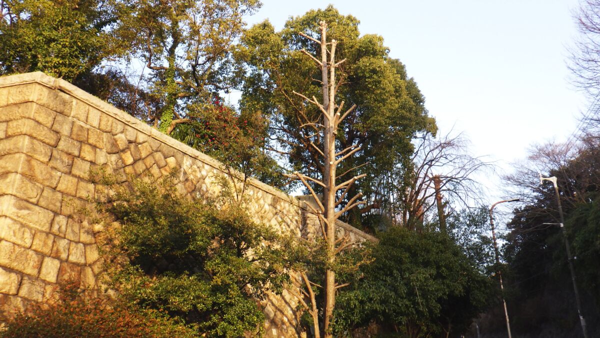 学校周囲の高木を「強剪定」