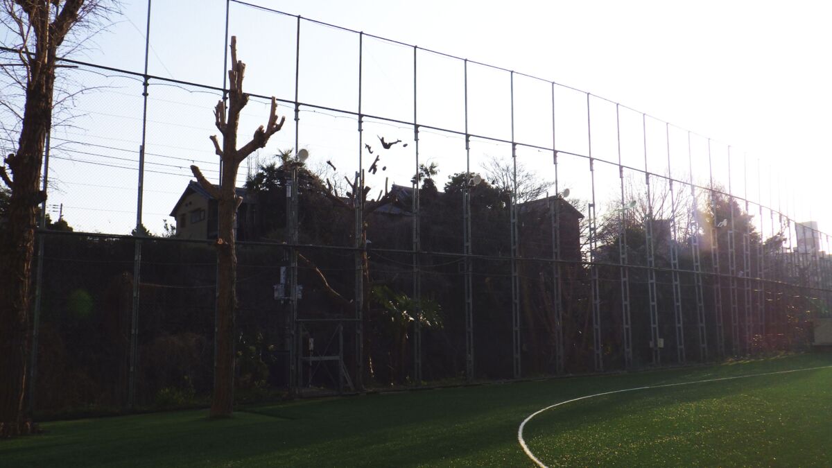 作業は、グラウンド内とフェンス外でそれぞれ2人ずつに分かれて進めました。