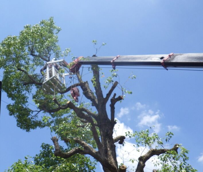 • 「特殊伐採」が必要な立地:隣家に枝が張り出している、電線が近い、重機が入れない狭小地など、職人がロープで登り、少しずつ切り落とす高度な技術が必要です。